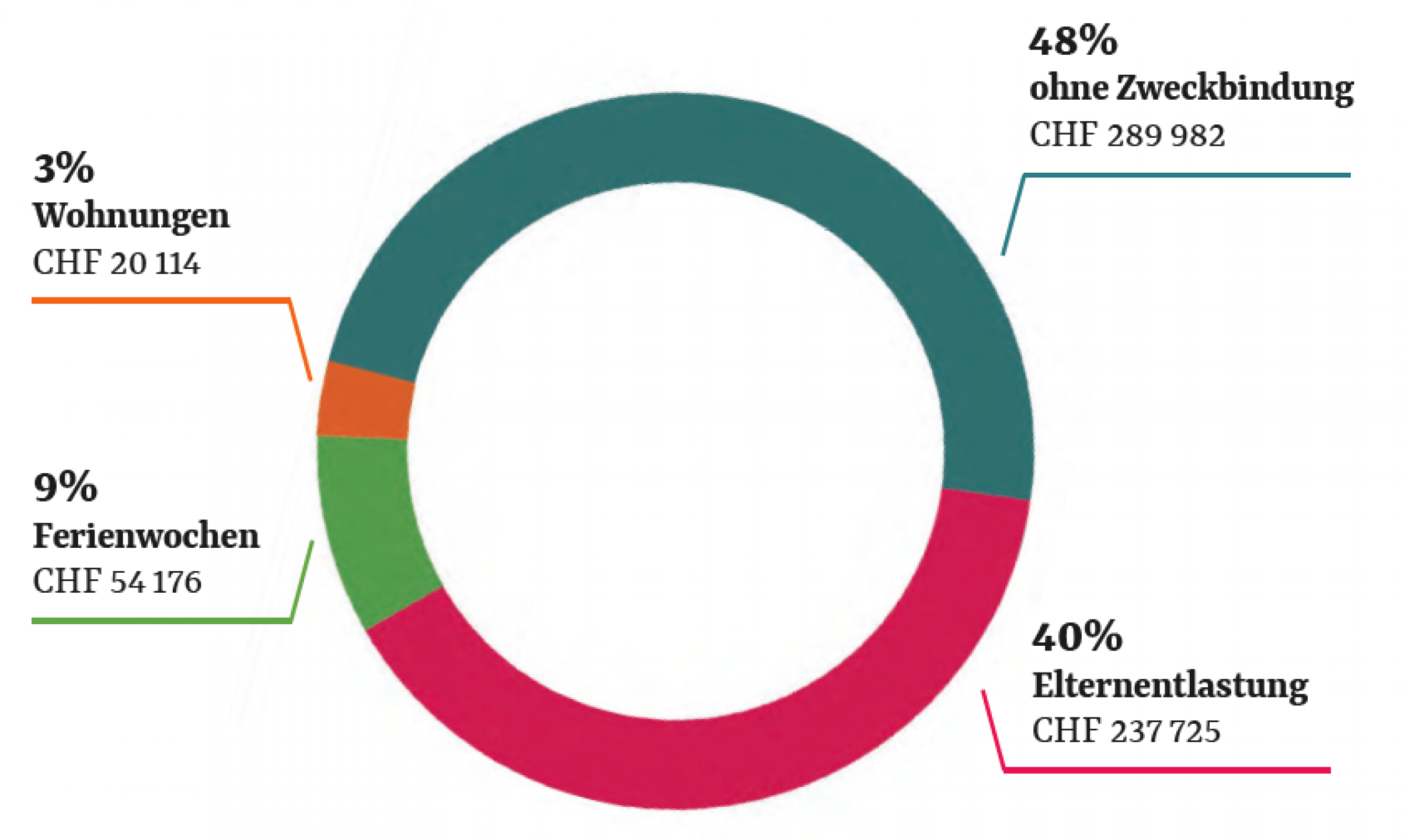 Die Einnahmen aus Spenden und Beiträgen an die Angebote lagen im Berichtsjahr bei CHF 601 997.-. Die grosszügigen Spenden ohne Zweckbindung ermöglichen die Finanzierung derjenigen Angebote, bei denen die zweckgebundenen Spenden nicht ganz ausreichen. Ausserdem dürfen wir von mehrjährigen Projektpartnerschaften profitieren, was den Aufwand an Fundraising-Kosten etwas senkt.