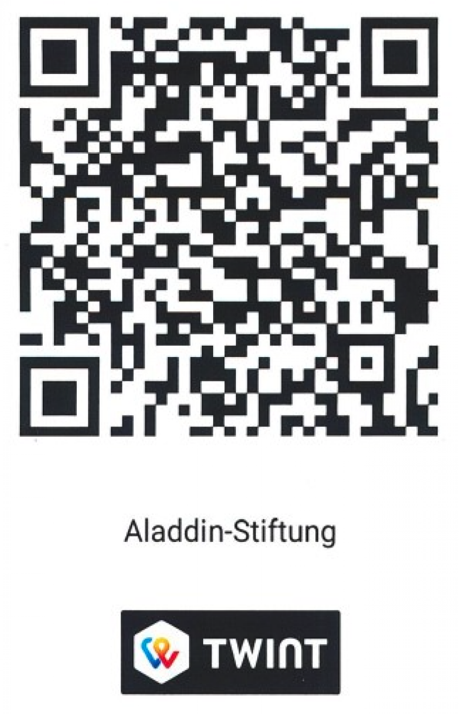 Gerne schicken wir Ihnen auch einen Einzahlungsschein zu. Nehmen Sie hierfür bitte Kontakt mit der Geschäftsstelle auf aladdin(at)stiftung.ch oder per Telefon +41 44 350 44 34.